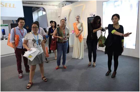 据现场情况了解,大龙网在本届网贸会中推出了众多匠心独运的亮点。在女性观客最感兴趣的服饰体验馆设置了“穿衣魔镜”体感设备,装载的3D体感形象搭配系统让众多女性客商纷纷驻足尝试,引来众人围观。这套系统中录入了OSell所售的上千款婚纱礼服以及服装鞋包,让操作者仅需站在“镜前”一米位置挥动手臂,即可被设备捕捉动作,在屏幕上呈现出换装后的效果。